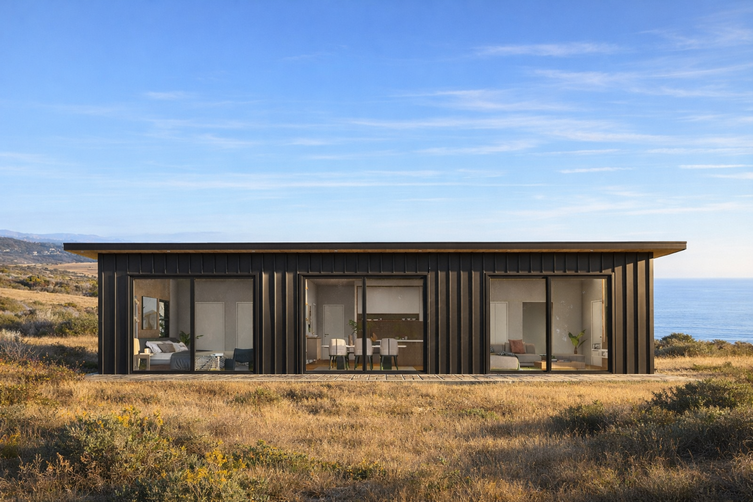 - Wall panels, roof panels and floor panels with all rough installed