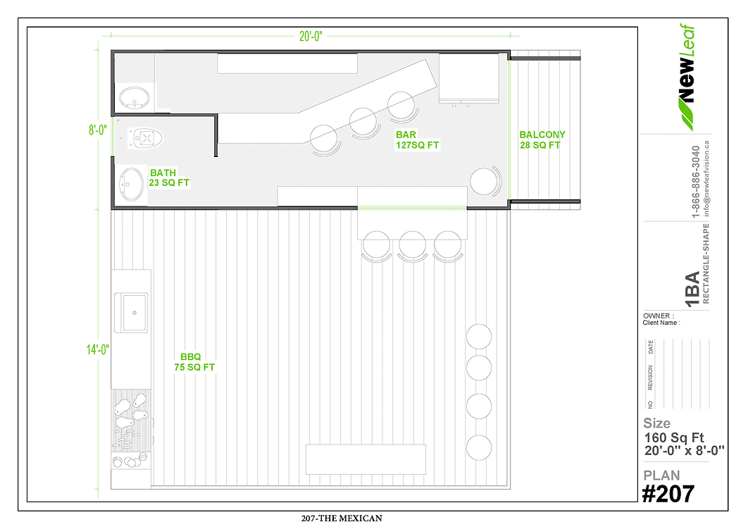 207 – The Mexican, 20 ft, 160 sq ft (Garden Suite)