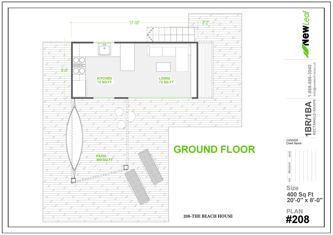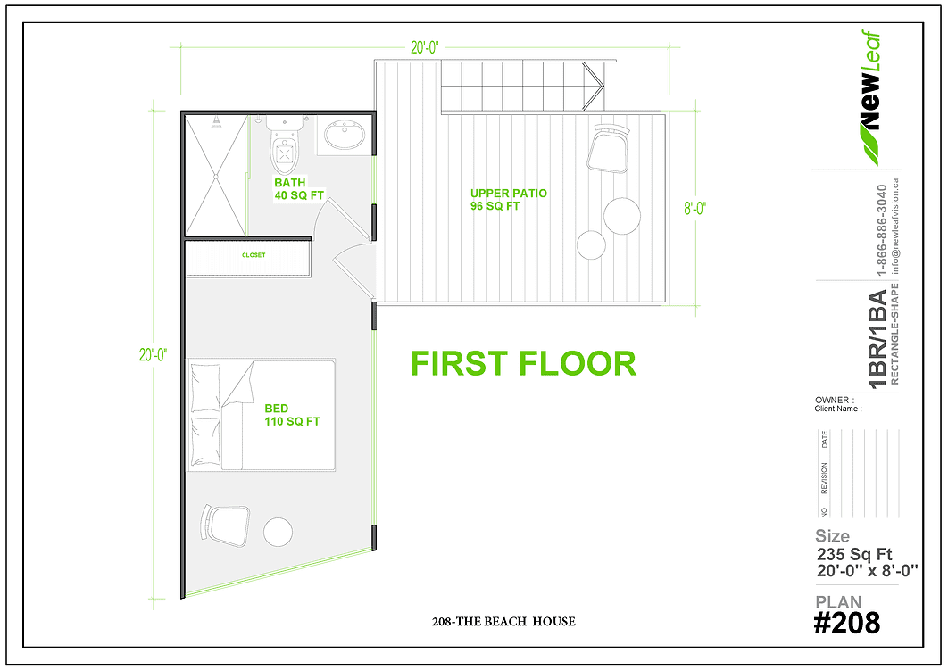 208 – The Beach House, 1 Bed 1 Bath, 340 sq ft, 2 x 20 ft (Off-Grid Living)