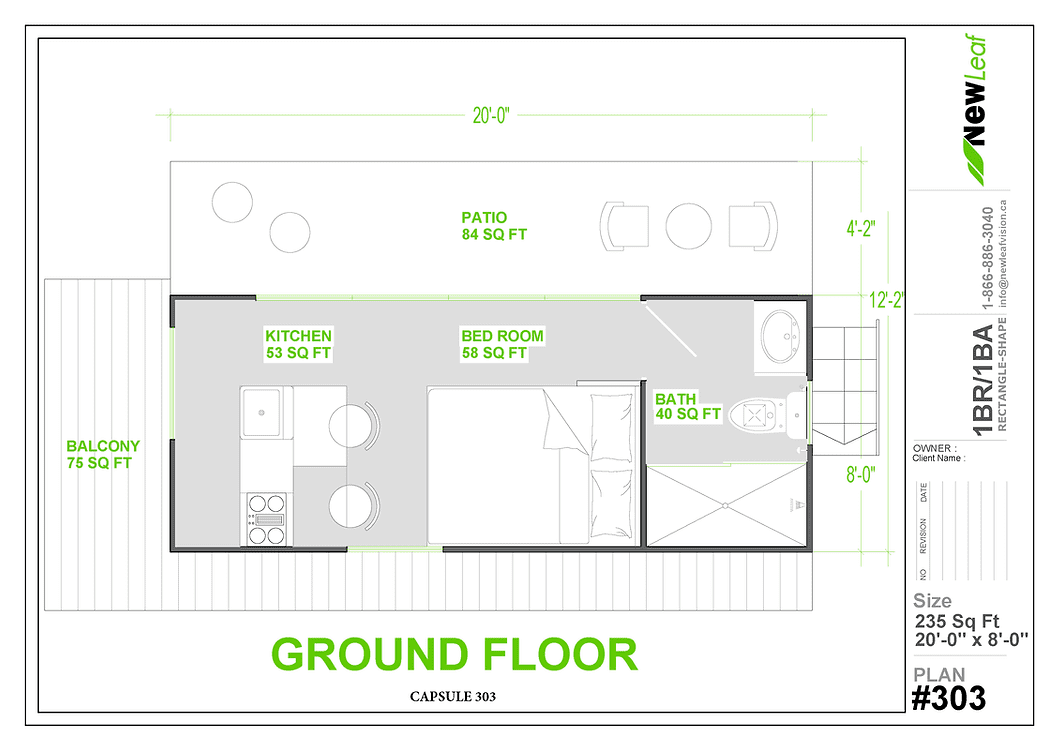 303 – Box 03, 1 Bed 1 Bath, 1 x 20 ft, 30 m² (Container Home)
