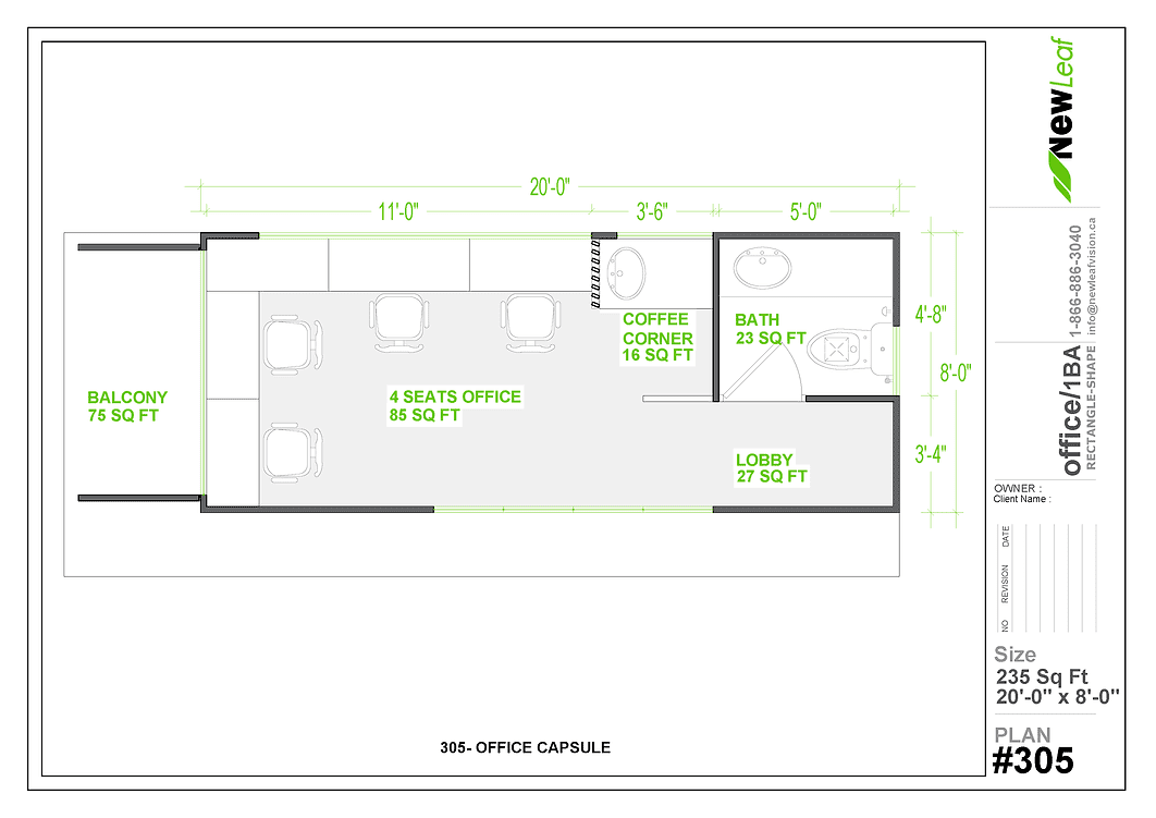 305 – Box 05, Luxury Office with Bathroom, 1 x 20 ft (Container Office)